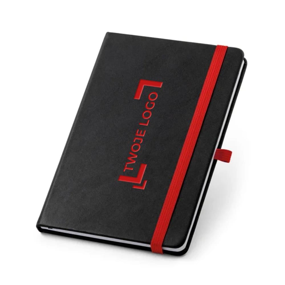 Notatnik A5 z twardą okładką z PU i 160 stronami w linie. Notatnik z kolorowym podłożem umożliwiającym grawerowanie laserowe w kolorze gumki. Posiada tasiemkę jako zakładkę, wewnętrzną kieszeń i uchwyt na długopis (długopis nie jest dołączony). 140 x 210 mm