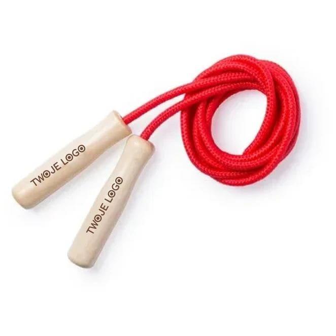 Skakanka z kolorowym sznurkiem i drewnianymi rączkami, może być ciekawym sposobem na aktywność fizyczną i spędzanie czasu na świeżym powietrzu, produkt wykonany z drewna