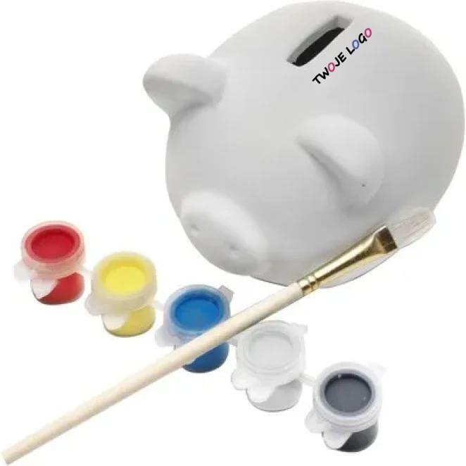 Skarbonka "świnka" do malowania, farbki i pędzelek z naniesieniem logo