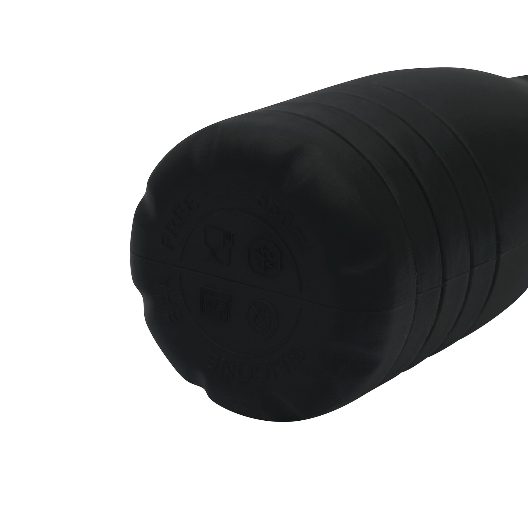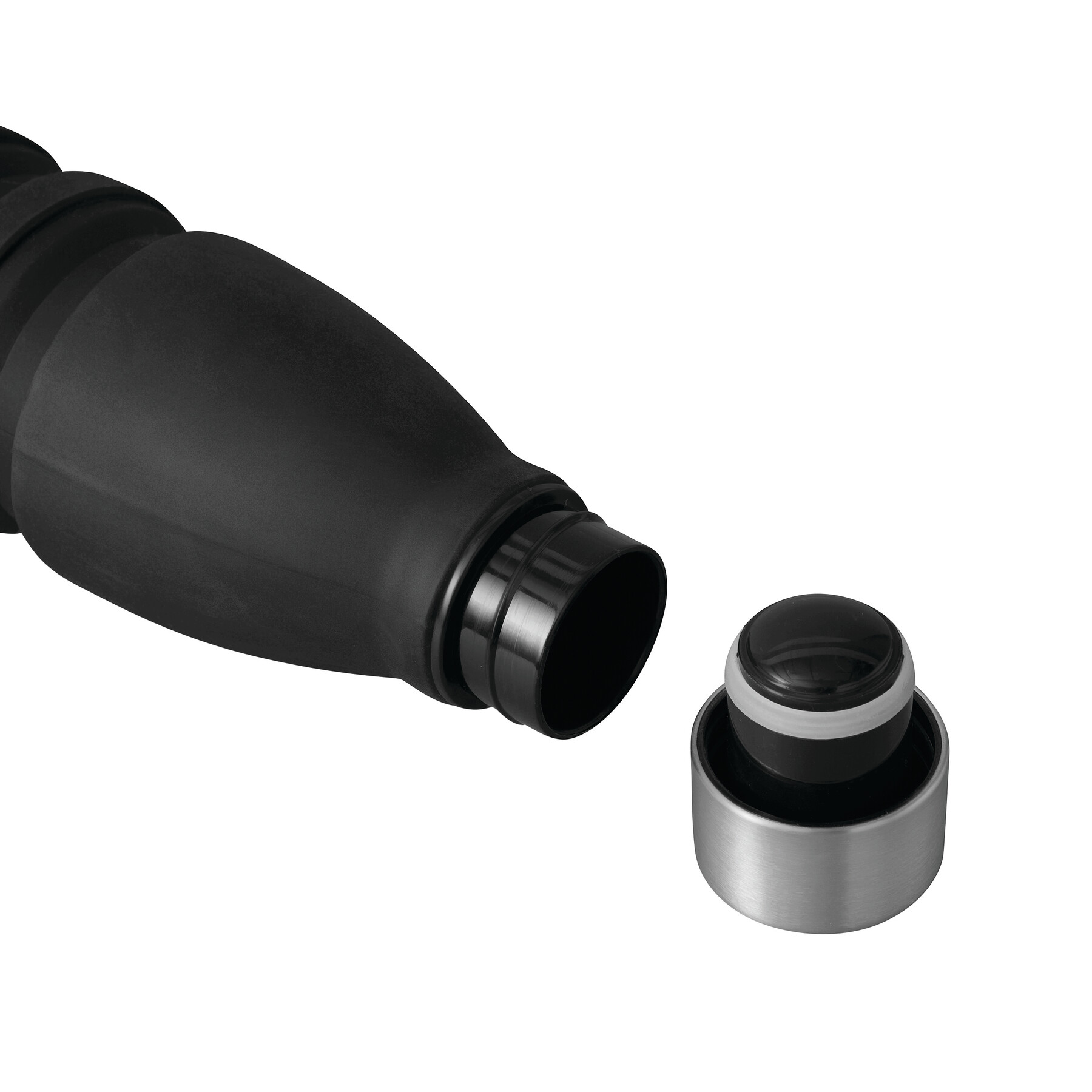 Składana butelka do picia BIG GETS SMALL. Posiada pokrywkę ze stali nierdzewnej z bezpieczną zakrętką i silikonowym pierścieniem uszczelniającym oraz aluminiowy karabińczyk (NIE nadaje się on do zabezpieczenia podczas wspinaczki). Butelkę można rozsuwać i składać o około 8 cm. Pojemność kubka to ok. 550 ml.