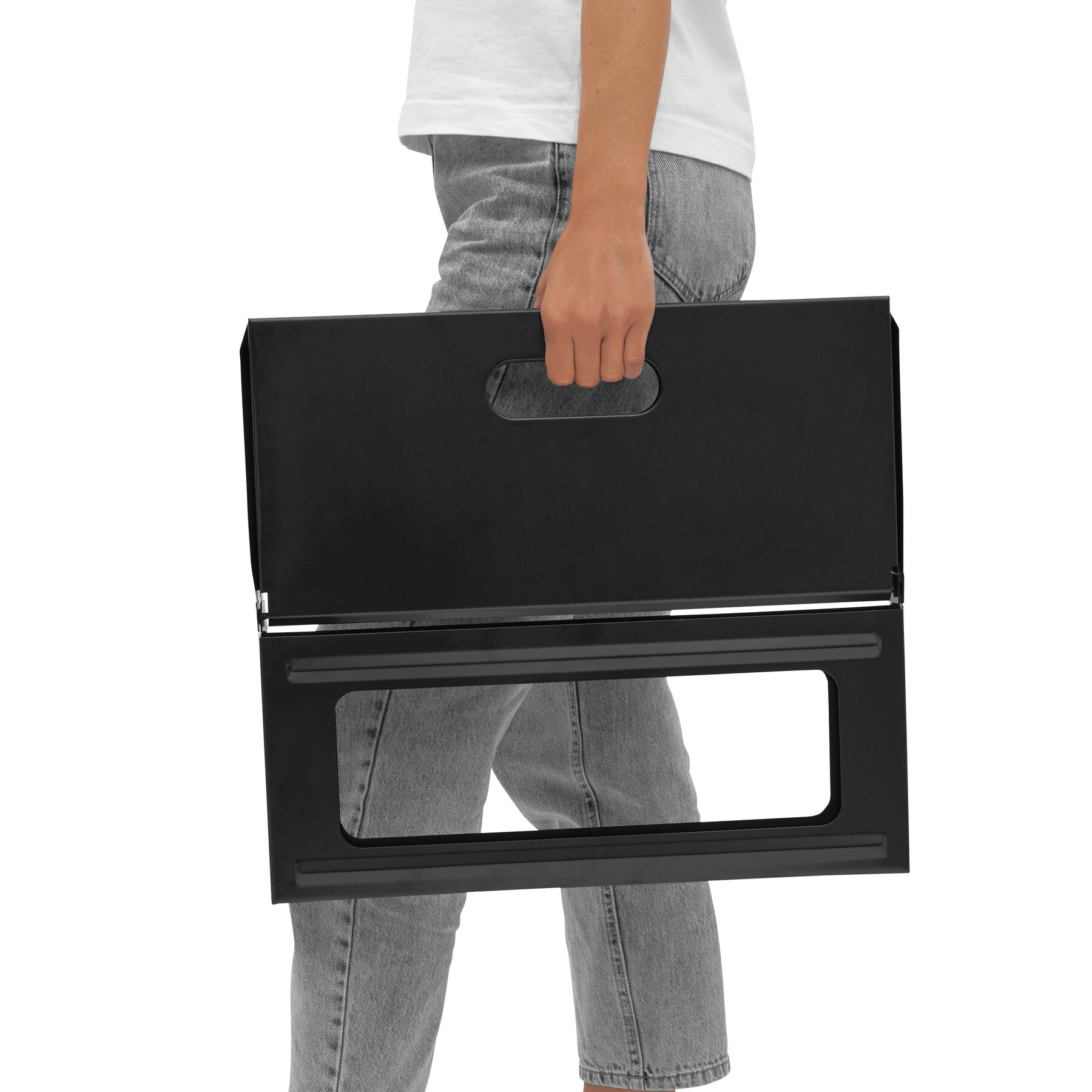Składany grill SUMMER EVENING 2.0 z 2 rusztami i 2 zintegrowanymi uchwytami do przenoszenia. Otwory wentylacyjne po bokach. Waga tylko 3 kg. Możliwość złożenia.