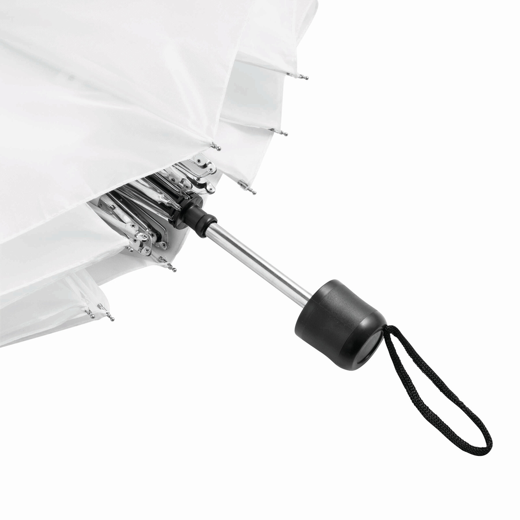 Składany parasol PICOBELLO z 3-częściową metalową laską, szynami z metalu i włókna szklanego, metalowymi kolcami, czarnym uchwytem z tworzywa sztucznego, z poszyciem poliestrowym i zamknięciem na rzep Velcro.