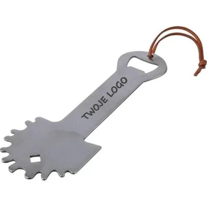 Stalowy skrobak do grilla, otwieracz do butelek, sznurek ułatwiający noszenie, zapakowany w rękaw papieru kraftowego