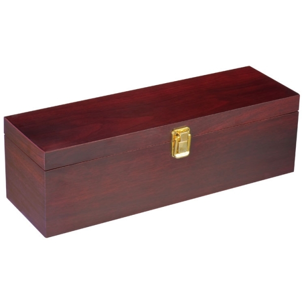 Skrzynka na wino JESOLO w zestawie z akcesoriami: okapnik, zatyczka do butelek, nóż kelnerski oraz dekanter. Materiały użyte przy produkcji: drewno, metal, stal nierdzewna.