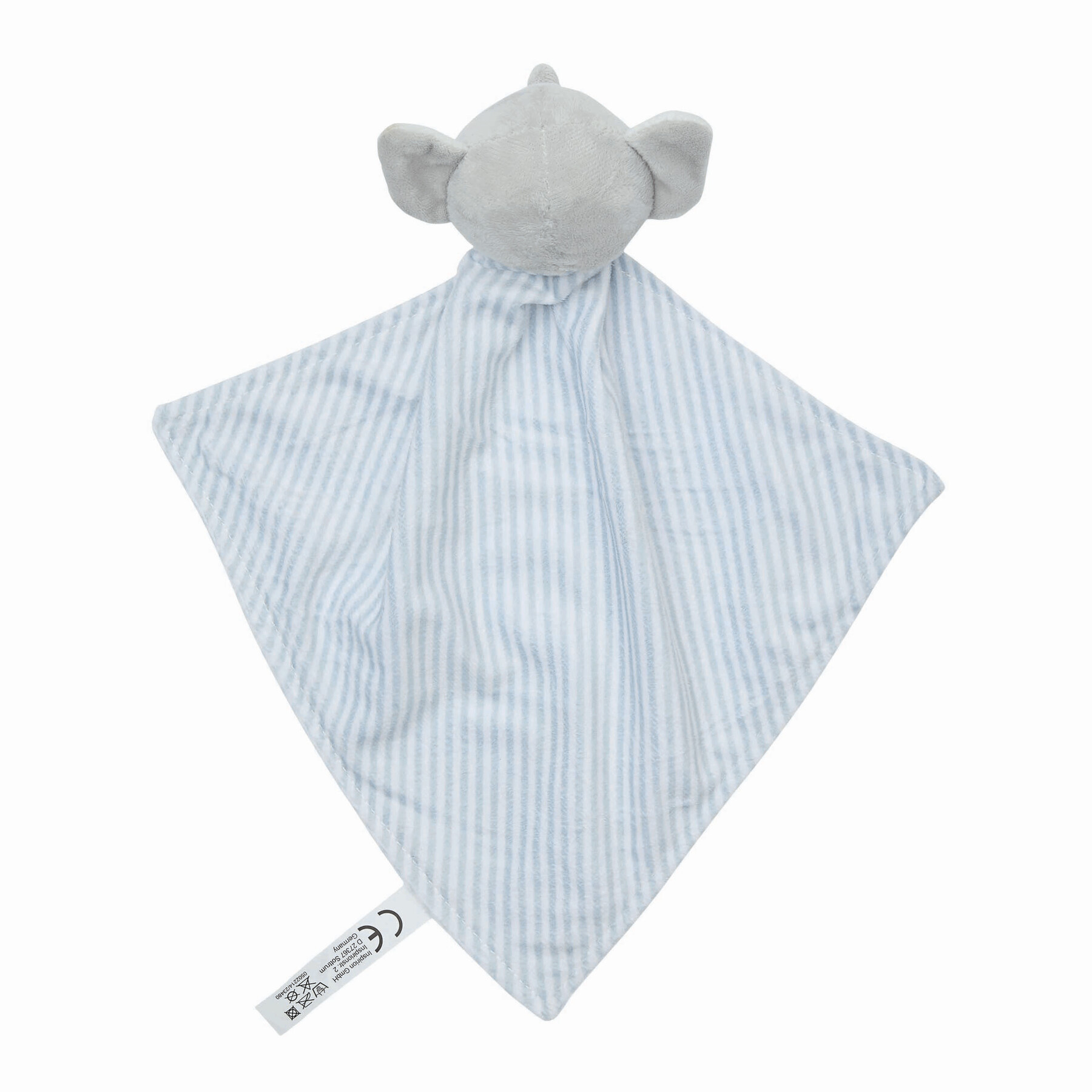 Słoń przytulanka DOMI z miękkiego materiału. Bez etykiety odpowiedni dla dzieci poniżej 3 roku życia. Z dodatkową etykietą do nadruku.