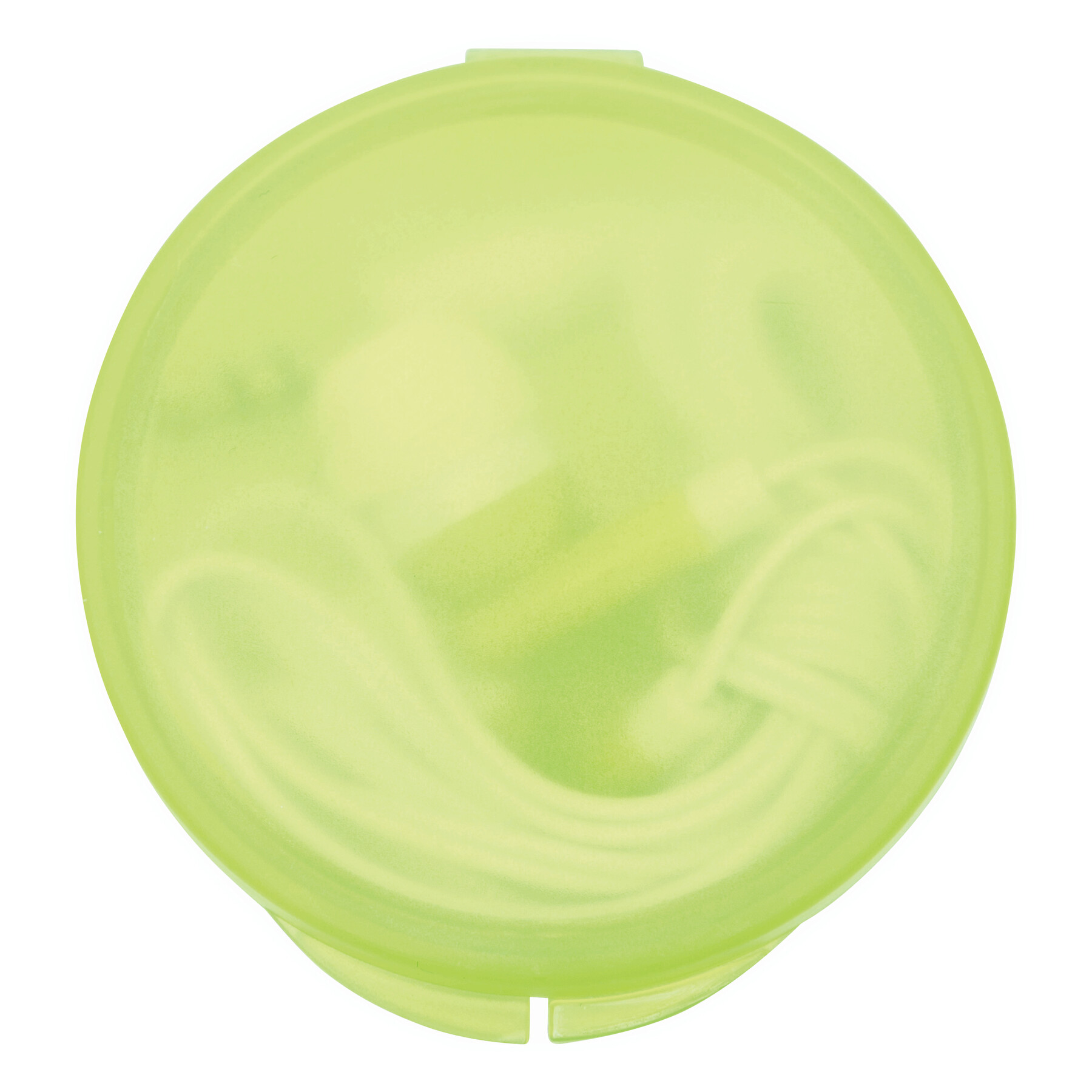 Słuchawki douszne MUSIC. Jack 3,5 mm, długość kabla ok. 117 cm, pakowane w pudełko w tym samym kolorze.