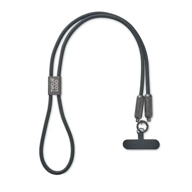Smycz do telefonu z kablem do ładowania 60W typu C do typu C w RPET.