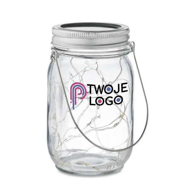 Solarna lampa zewnętrzna w kształcie słoika masona z 20 diodami LED. Stwórz miłą atmosferę w swoim ogrodzie, umieszczając ten słoik na stole lub tarasie. Małe lampki LED tworzą przyjemny efekt w ciemności. Wewnętrzna bateria zostanie naładowana poprzez umieszczenie słoika na słońcu lub w świetle dziennym. Na górze znajduje się zawieszka, więc można przenosić lub powiesić słoik w dowolnym miejscu. Kiedy bateria 300mAh jest w pełni naładowana, będzie świecić przez około 5 godzin. NI-MH w zestawie. IP44 wodoodporny.