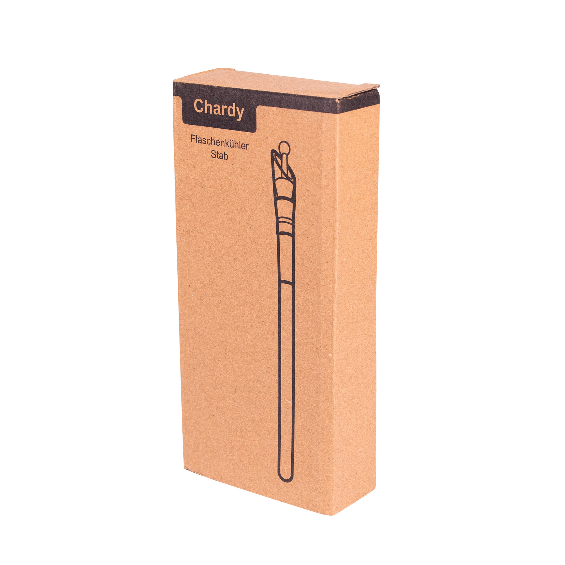 Sopel do chłodzenia wina CHARDY z wyjmowanym nalewakiem i korkiem. Sopel ze stali nierdzewnej wypełniony żelem chłodzącym należy schłodzić przez ok. 1 godzinę w zamrażarce, następnie nałożyc nalewak z korkiem i włożyć do butelki. Jest łatwy do czyszczenia, szybko gotowy do użycia. Przeznaczony do kontaktu z żywnością. Nie zmienia smaku ani nie rozcieńcza napoju. Pasuje do wszystkich rodzajów butelek.