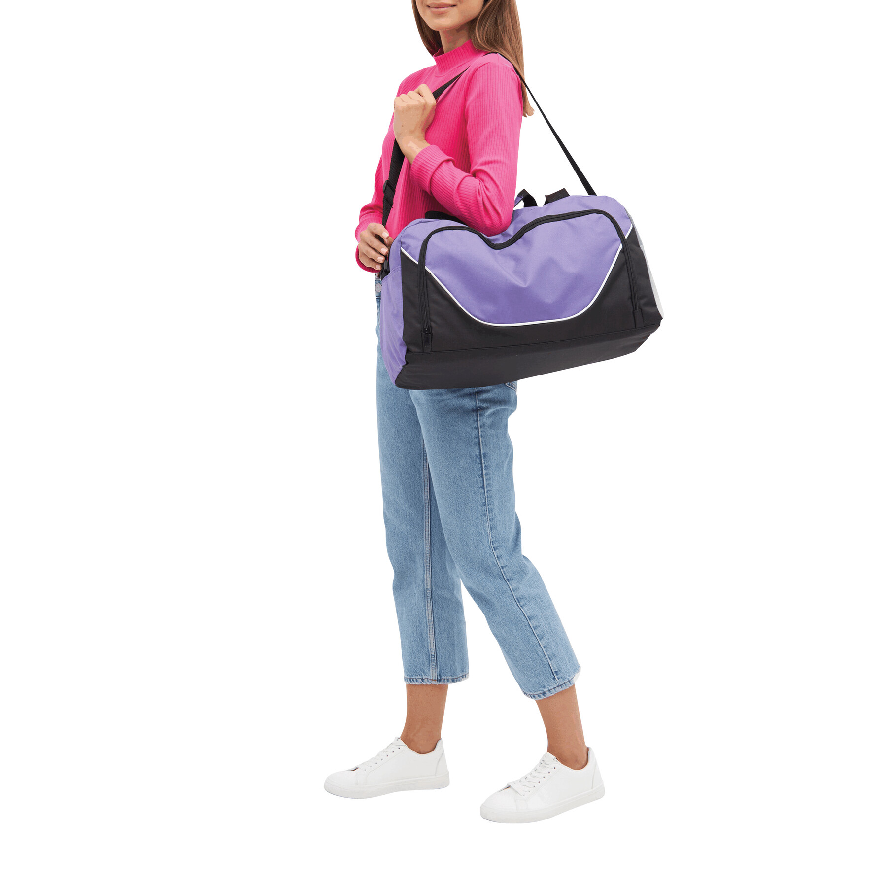 Sportowa torba JORDAN z główną komorą na suwak, z przodu kieszeń na zamek, wzmocnione uchwyty do przenoszenia, regulowany pasek na ramię oraz wzmocnione dno.