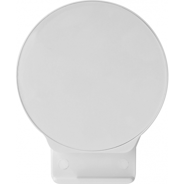 Plastikowy stojak na telefon z antypoślizgową podstawą i metalowym długopisem piszącym na niebiesko.