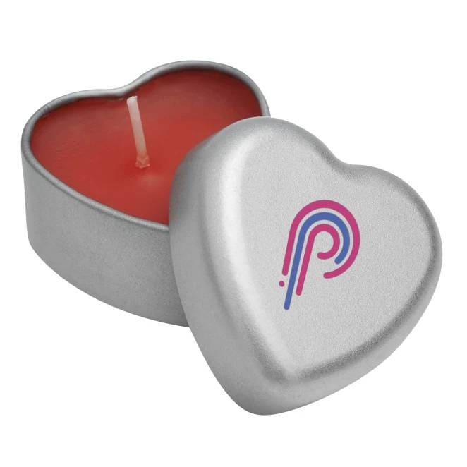 Świeczka o zapachu wanilii GOOD SPIRITS w metalowym świeczniku w kształcie serca.