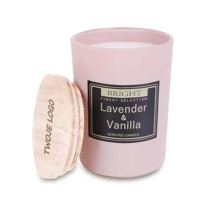 Świeca zapachowa w szkle, zamykana drewnianym wieczkiem. Idealna mieszanka o zapachu świeżej lawendy i słodkiej wanilii. Czas palenia około 50 godzin.