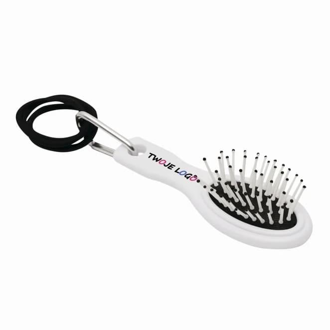 Szczotka do włosów COIFFEUR z aluminiowym karabińczykiem, dołączone 3 gumki do włosów.