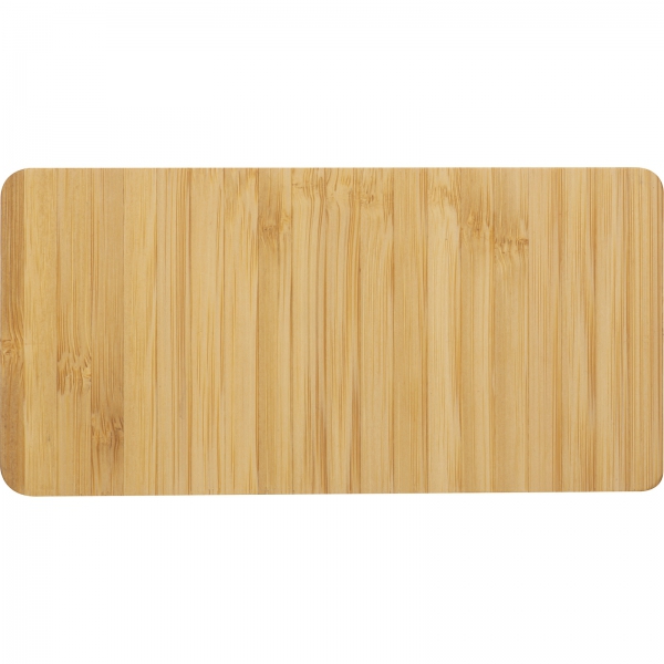 Idealny zestaw do kawy czy herbaty - zawiera bambusową deseczkę z miejscem na słodką przekąskę, łyżeczkę i szklaną filiżankę 200 ml.