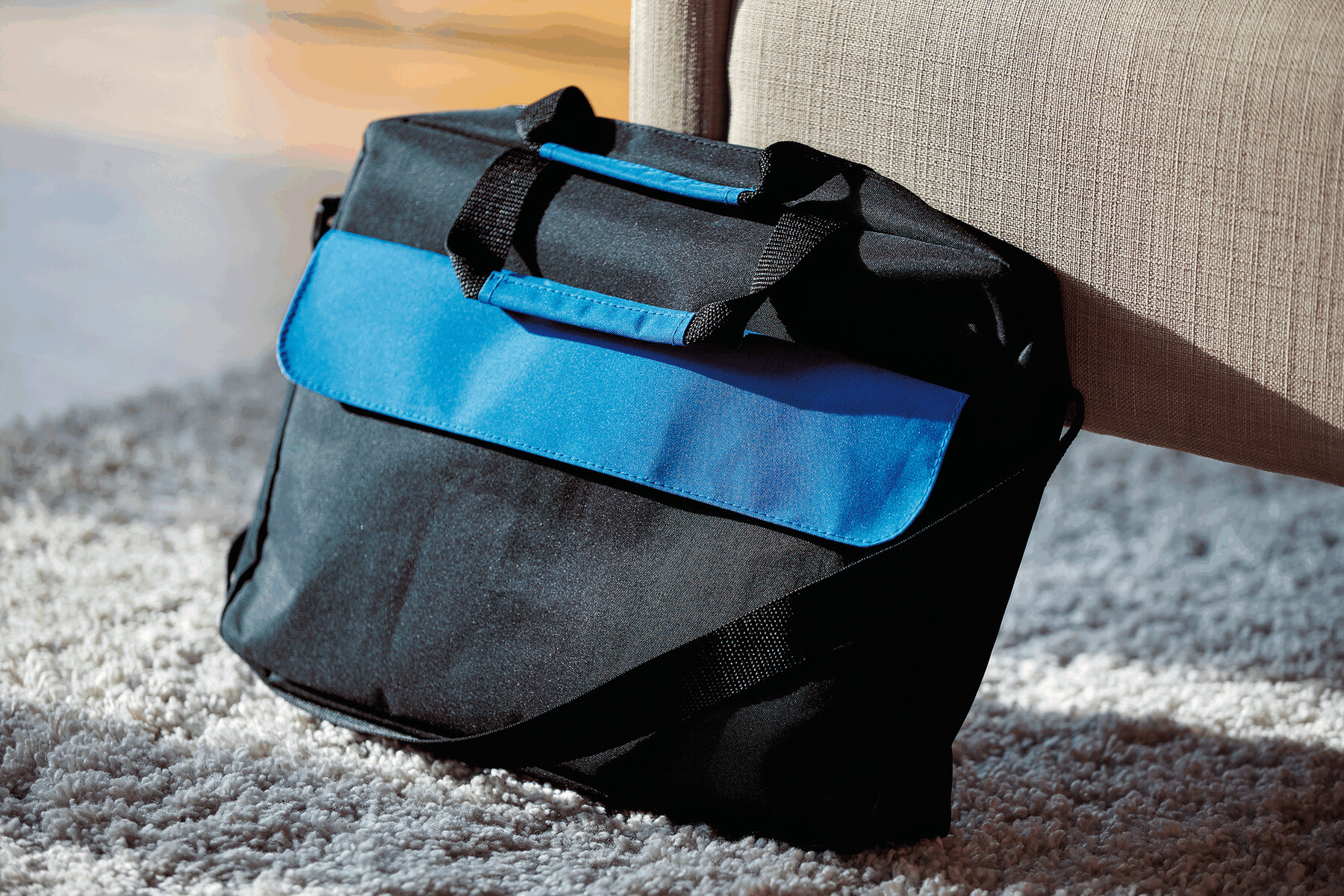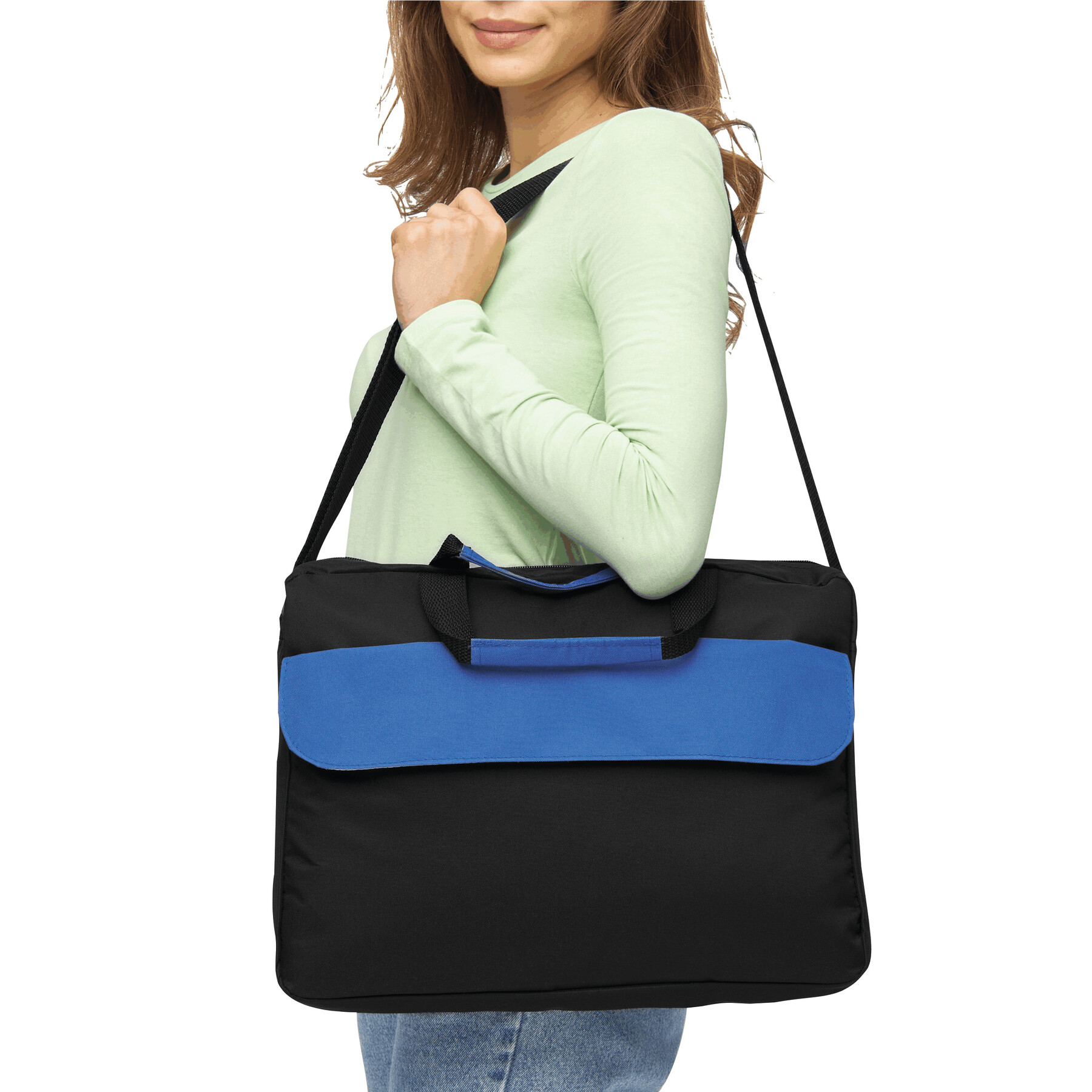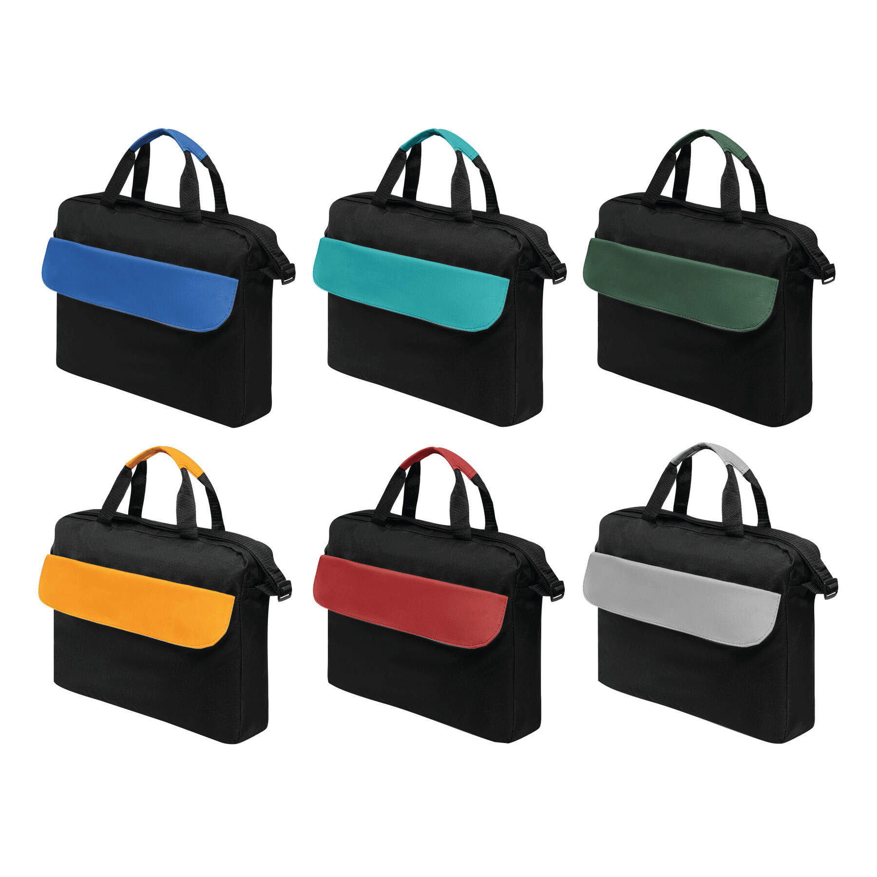 Teczka na dokumenty BRISTOL, kolorowa klapa zapinana na rzep, przestronna komora główna na zamek błyskawiczny, 2 wzmacniane kolorowe uchwyty do przenoszenia, regulowany pasek na ramię.