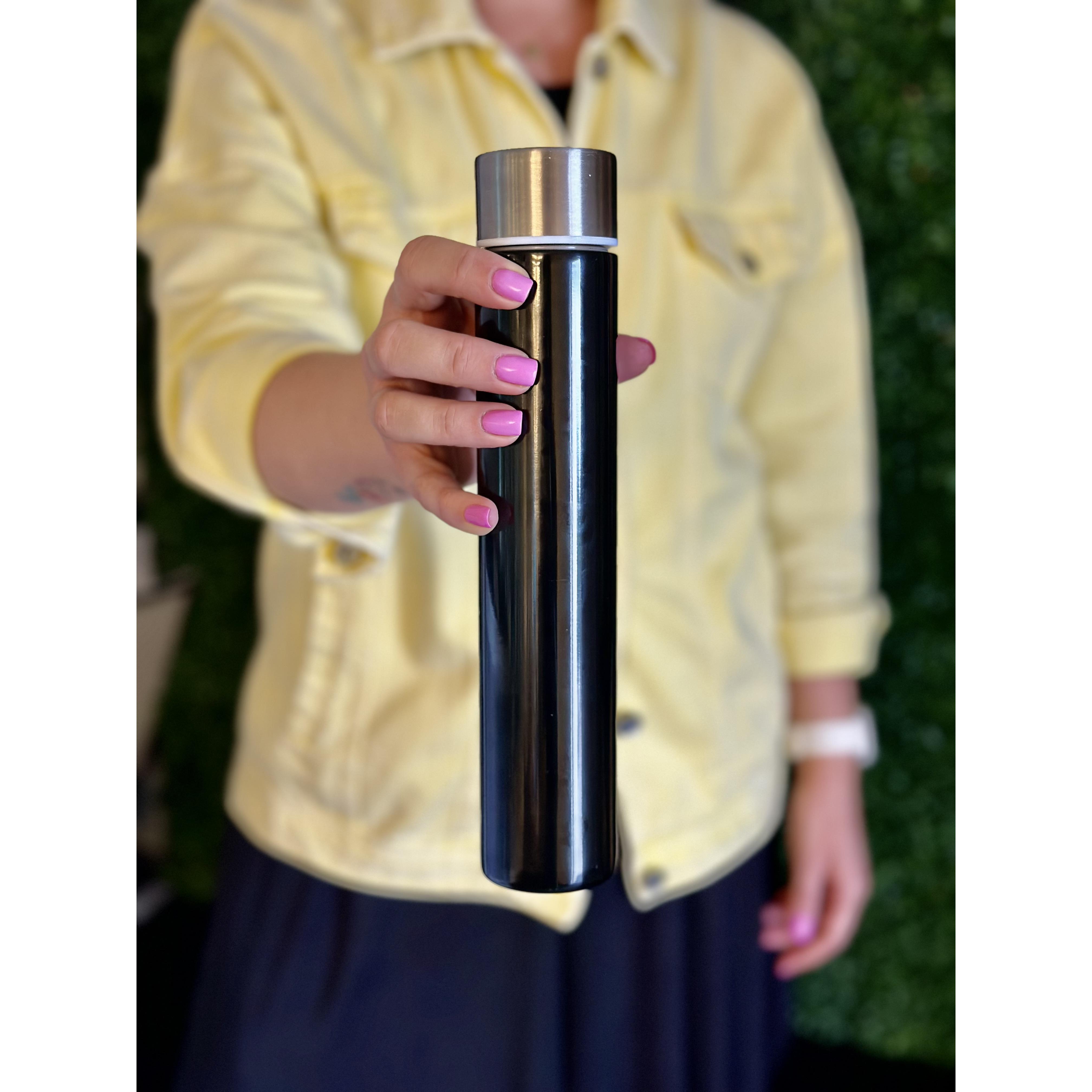Nieprzeciekający, smukły termos wykonany ze stali nierdzewnej. Utrzymuje ciepłą temperaturę napoju do 4 godzin, a zimną - do 6. Pojemność 310 ml.