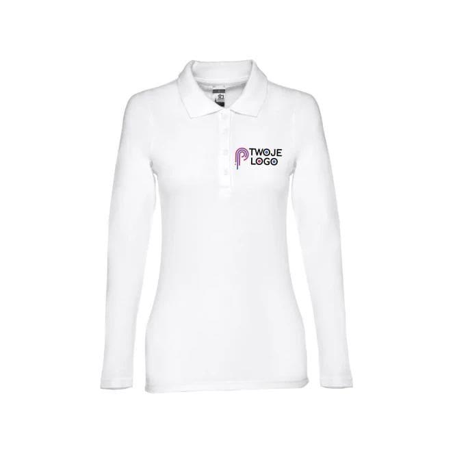 THC BERN WOMEN WH. Damska koszulka polo z długim rękawem z bawełny zgrzebnej do naniesienia logo