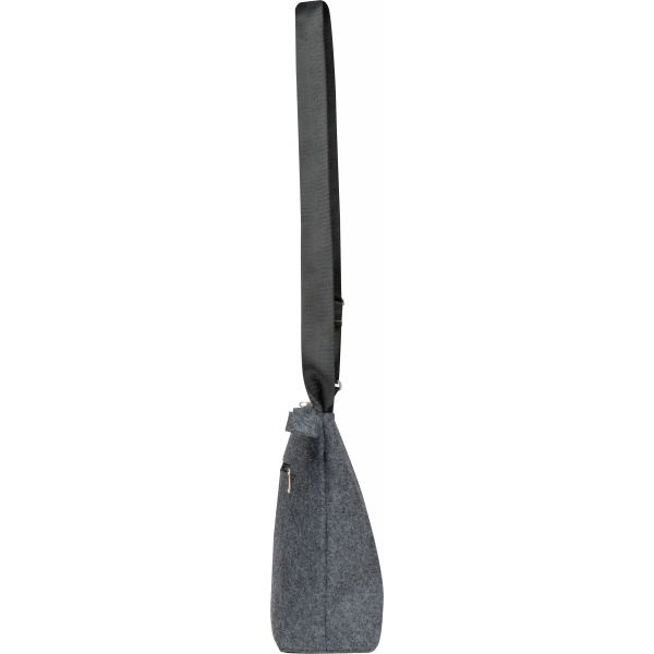 Torba na ramię wykonana z filcu pochodzącego z recyklingu. Torba posiada dużą komorę główną zamykaną na zamek, małą kieszeń frontową oraz regulowany pasek na ramię.