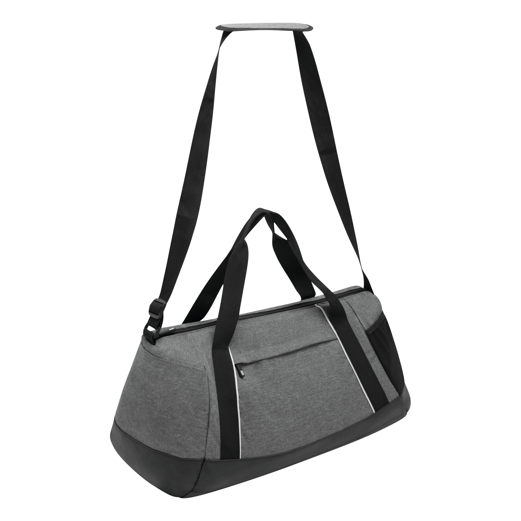 Torba sportowa SPLIT GYM z przestronną komorą główną i wewnętrzną kieszenią z zamkiem błyskawicznym. Przednia kieszeń na zamek błyskawiczny, kieszeń z siatki po jednej stronie, kieszeń wsuwana po drugiej stronie, regulowany pasek na ramię z poduszką.