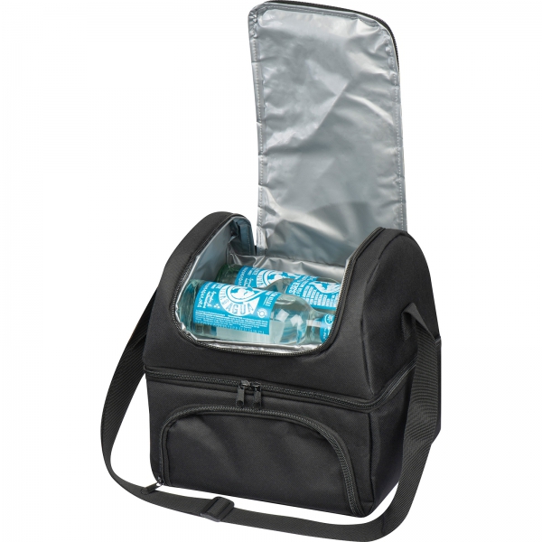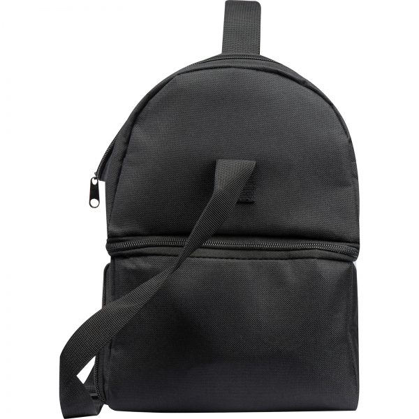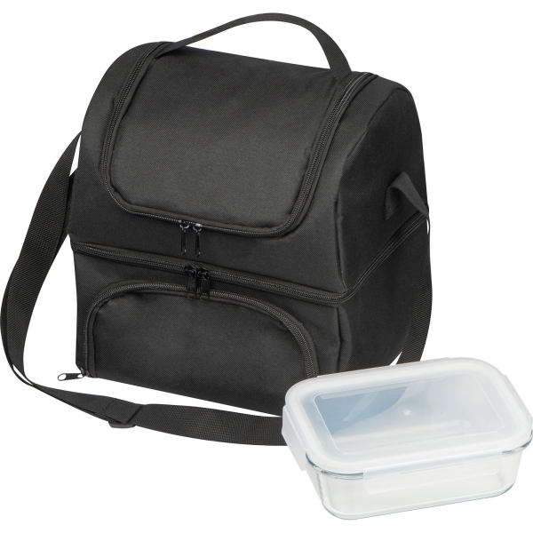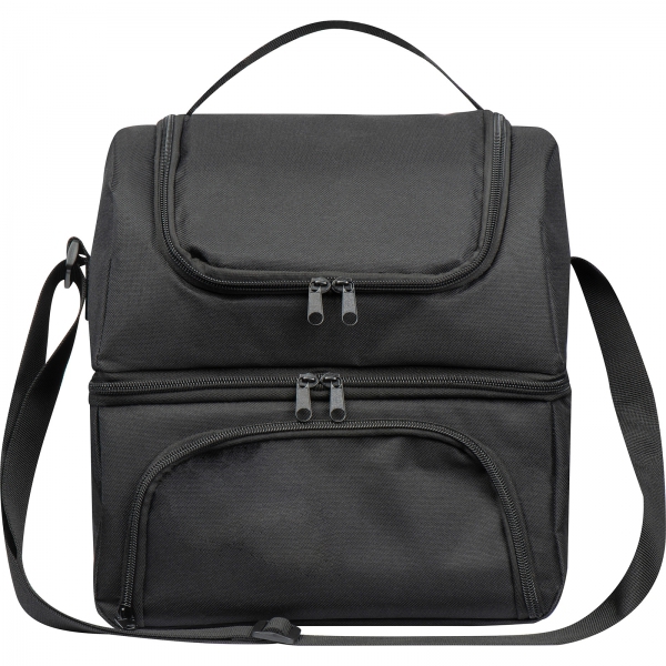 Torba termiczna z dwoma dużymi komorami, dodatkowo wyposażona w pudełko na lunch. Torba została wyposażona w długi, regulowany pasek na ramie, ułatwiający przenoszenie.