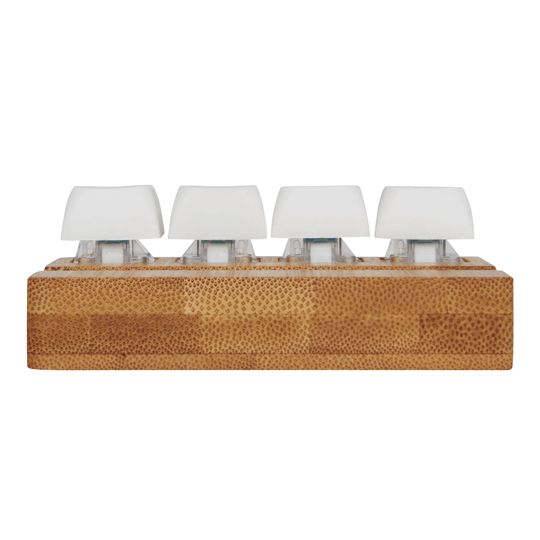 Uchwyt na telefon CLICKER. Ma on bambusowe wykończenie oraz 4 klikalne przyciski komputerowe dla zmniejszenia stresu.