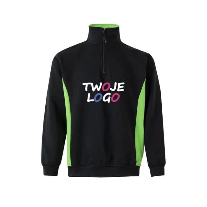 Dwukolorowa bluza polarowa (260 g/m²) z poliestru (65%) i bawełny (35%). Z wysokim kołnierzem i zamkiem błyskawicznym. Prążkowane mankiety i dół. Powłoka antypillingowa. Boki i wewnętrzna strona kołnierza w kontrastowym kolorze. Rozmiar: XS, S, M, L, XL, 2XL, 3XL