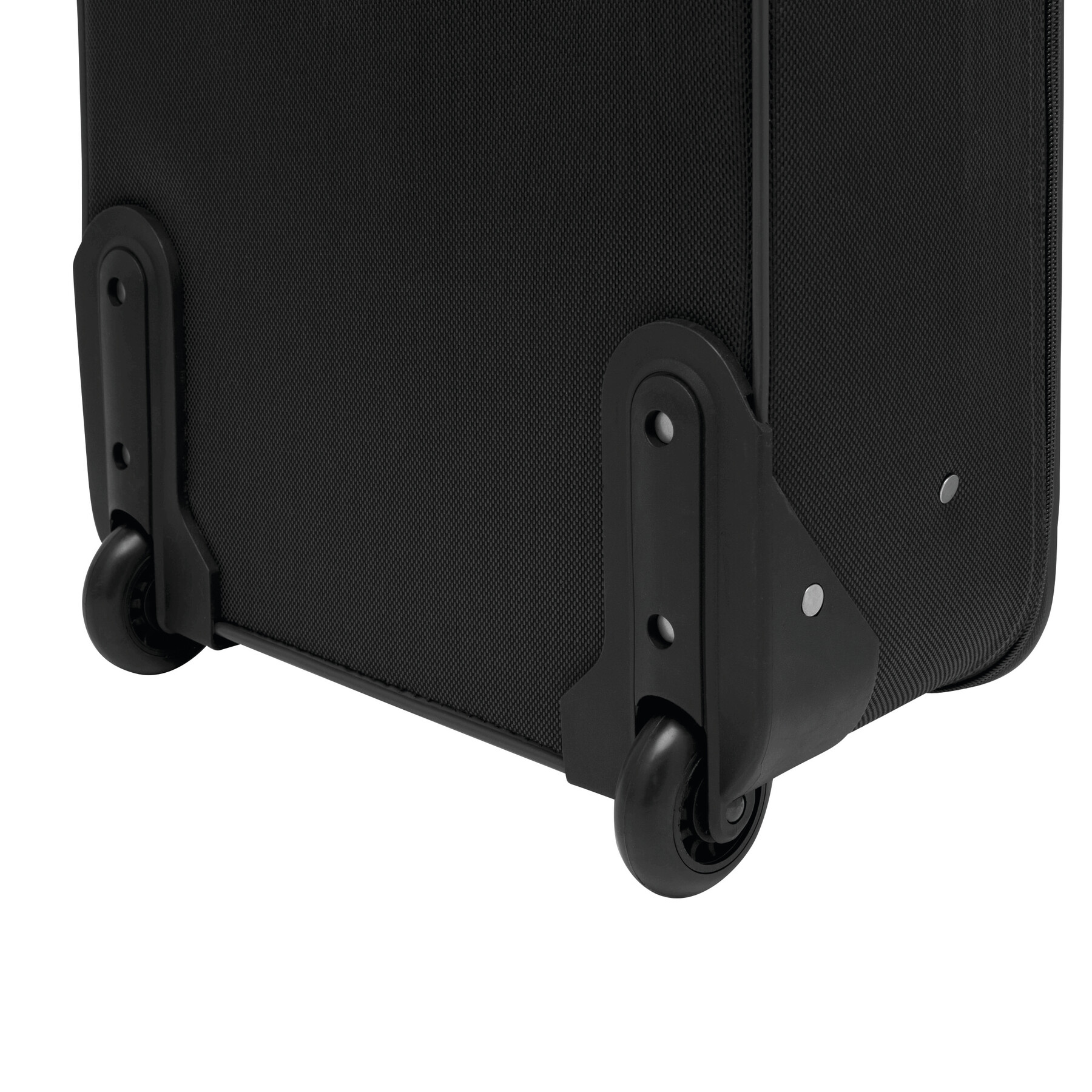 Walizka podróżna GALWAY. Komora główna na zamek, wyściełana przestrzeń pakowania i dodatkowa komora na zamek, 2 komory na zamek z wymienną metalową płytką z przodu, z tyłu kieszonka na dane adresowe, uchwyt do przenoszenia, blokowany teleskopowy uchwyt, lekko jeżdżące kółka z ochraniaczami na rogi i stopki do podparcia o podłoże.