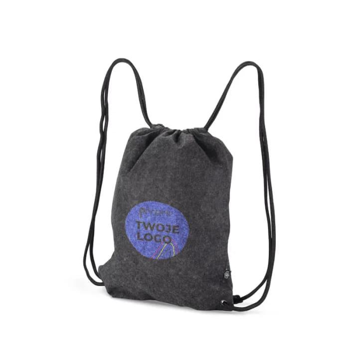 Worek DENGY wykonany z recyklingowanego filcu rPET w grafitowym, neutralnym kolorze. W połączeniu z czarnymi sznureczkami i uchwytem prezentuje się niezwykle ciekawie.
