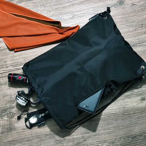 Worek sportowy Nunavut marki Schwarzwolf koloru czarnego o pojemności 8 l, wykonany z mocnego i wytrzymałego poliestru ripstop 420D.