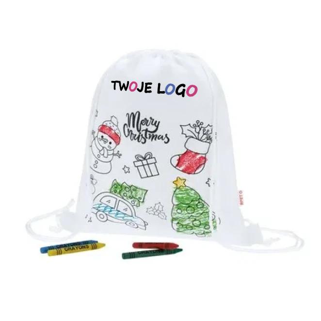 Worek ze sznurkiem do kolorowania, świąteczny wzór, kredki z nadrukiem na zamówienie