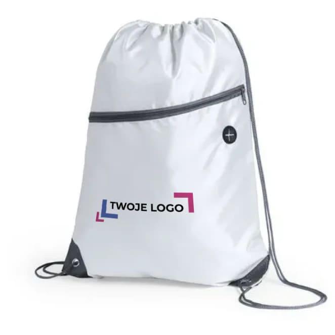 Worek ze sznurkiem umożliwiającym noszenie na plecach, wzmocnione narożniki zmniejszają ryzyko rozdarcia materiału, pomieści drobne zakupy lub strój sportowy na siłownię, posiada przednią kieszeń zamykaną na zamek błyskawiczny oraz otwór na kabel od słuchawek lub power banku (nie są dołączone), produkt wykonany z poliestru 210D