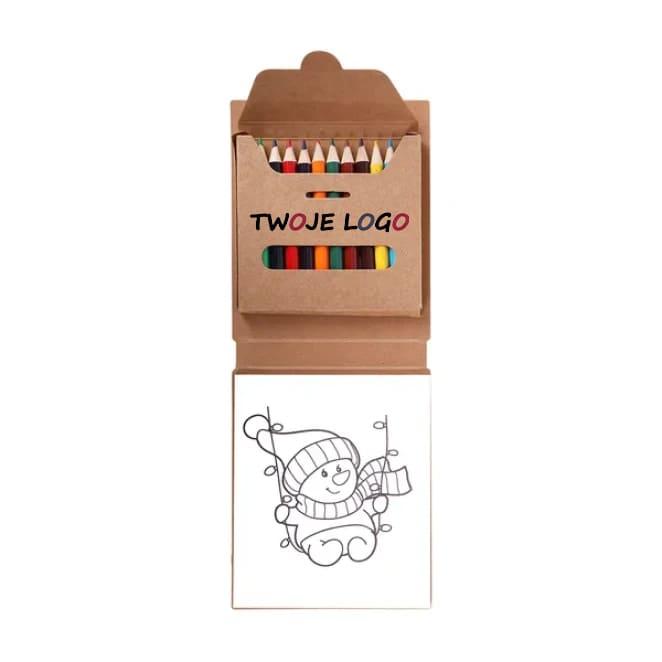Zestaw do rysowania składający się z 12 kolorowanek, 12 kredek oraz 50-kartkowego notesu (gramatura 70g/m2).