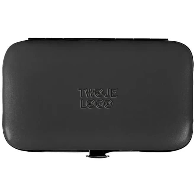 Zestaw do manicure AVOLA składający się z: nożyczek, pilnika, obcinacza do paznokci oraz pęsety. Całość umieszczona w etui z poliuretanu.