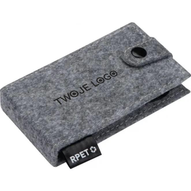 Zestaw do manicure w filcowym etui wykonanym z materiału pochodzącego z recyklingu. Zestaw zawiera nożyczki do paznokci, pilnik do paznokci, cążki do paznokci, pęseta i dwa patyczki do skórek.