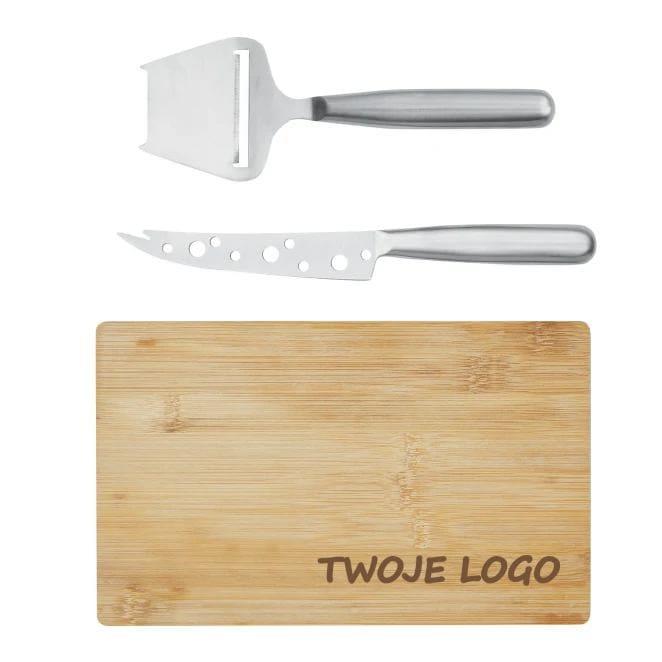 Zestaw do sera FESCO składa się z trzech elementów: noża do sera, krajalnicy i deski do krojenia z bambusa.