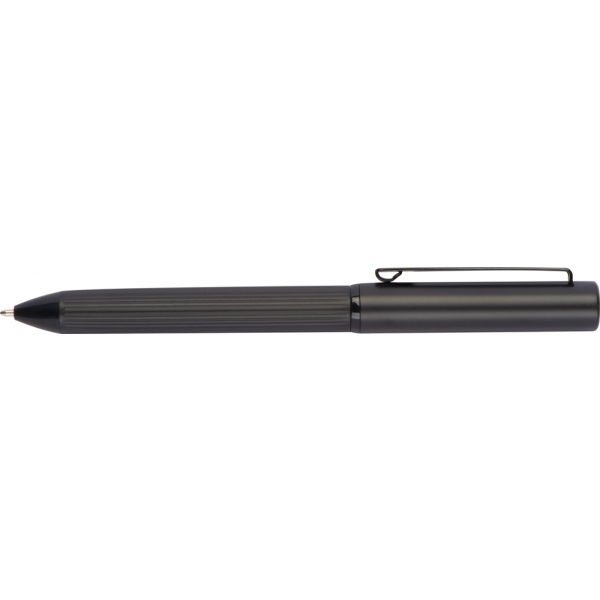 Zestaw składający się z piszącego na niebiesko, metalowego długopisu oraz z notesu w miękkiej okładce z 64 kartkami. Papier w notesie w linie wykonany z papieru pochodzącego z recyklingu. Całość zapakowana w ozdobne pudełko z magnetycznym zamknięciem.