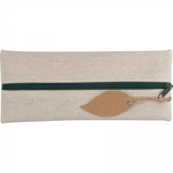 Przyjazny środowisku zestaw do pisania. Zwiera drewnianą linijkę, gumkę do ścierania, drewnianą temperówkę, ołówek i tekturowy długopis. Całość zapakowana w przyjazne środowisku bawełniane etui na zamek błyskawiczny.
