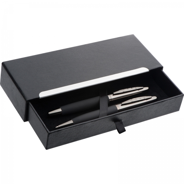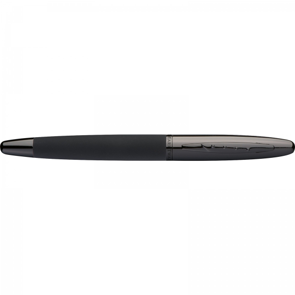 Stylowy zestaw piśmienniczy Mark Twain. W eleganckim etui koloru czarnego znajdziemy pióro wieczne wykonane z tworzywa sztucznego i stali szczotkowanej. Połączenie tych dwóch gatunków materiałów oraz oryginalnego design sprawia, że pióro jest eleganckie i wytrzymałe. O jego wytrzymałości i precyzji pisania świadczy również stalowa stalówka wykonana przy zachowaniu najwyższych norm stosowanych przez producenta.Kolory wkładów: oba elementy piszą na niebiesko