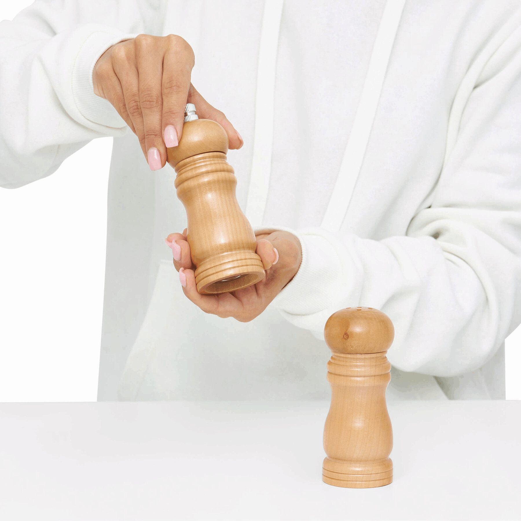Zestaw solniczka i młynek do pieprzu DUO SPICE: wykonany z drewna, młynek do pieprzu z mechanizmem twist i ceramicznym mechanizmem mielącym, solniczka z 5 otworami do kontrolowanego dozowania