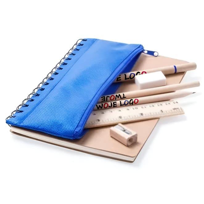 Zestaw szkolny, piórnik, 2 ołówki, długopis, notatnik, linijka, gumka i temperówka do naniesienia logo