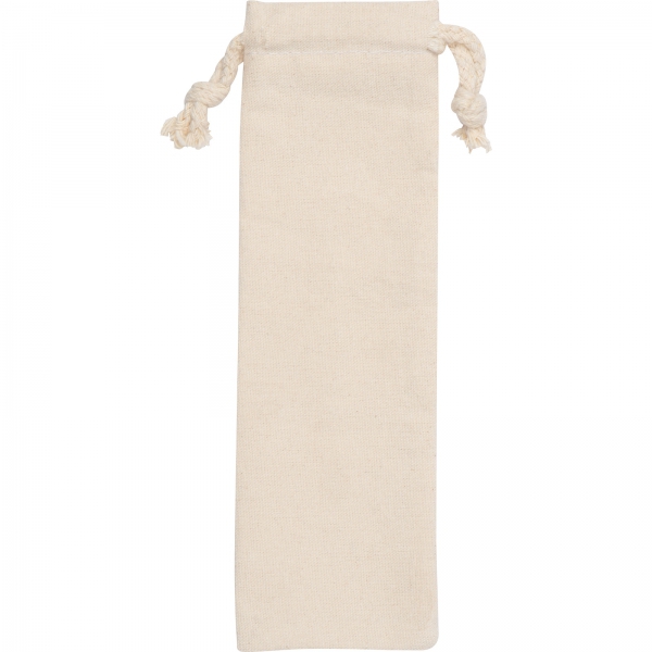 Przyjazny środowisku zestaw wielorazowych sztućców wykonanych z bambusa. W bawełnianym, ściąganym sznurkiem pokrowcu znajdują się: łyżka, nóż oraz widelec. Ogranicz zużywanie jednorazowych plastikowych sztućców i zabierz na wyjazd lub camping ten wielorazowy, ekologiczny zestaw.